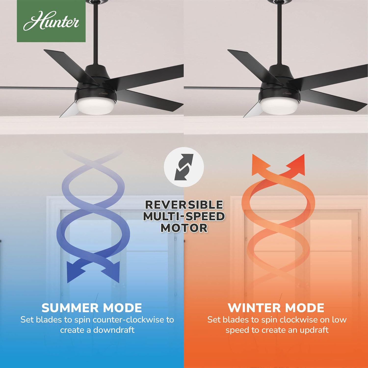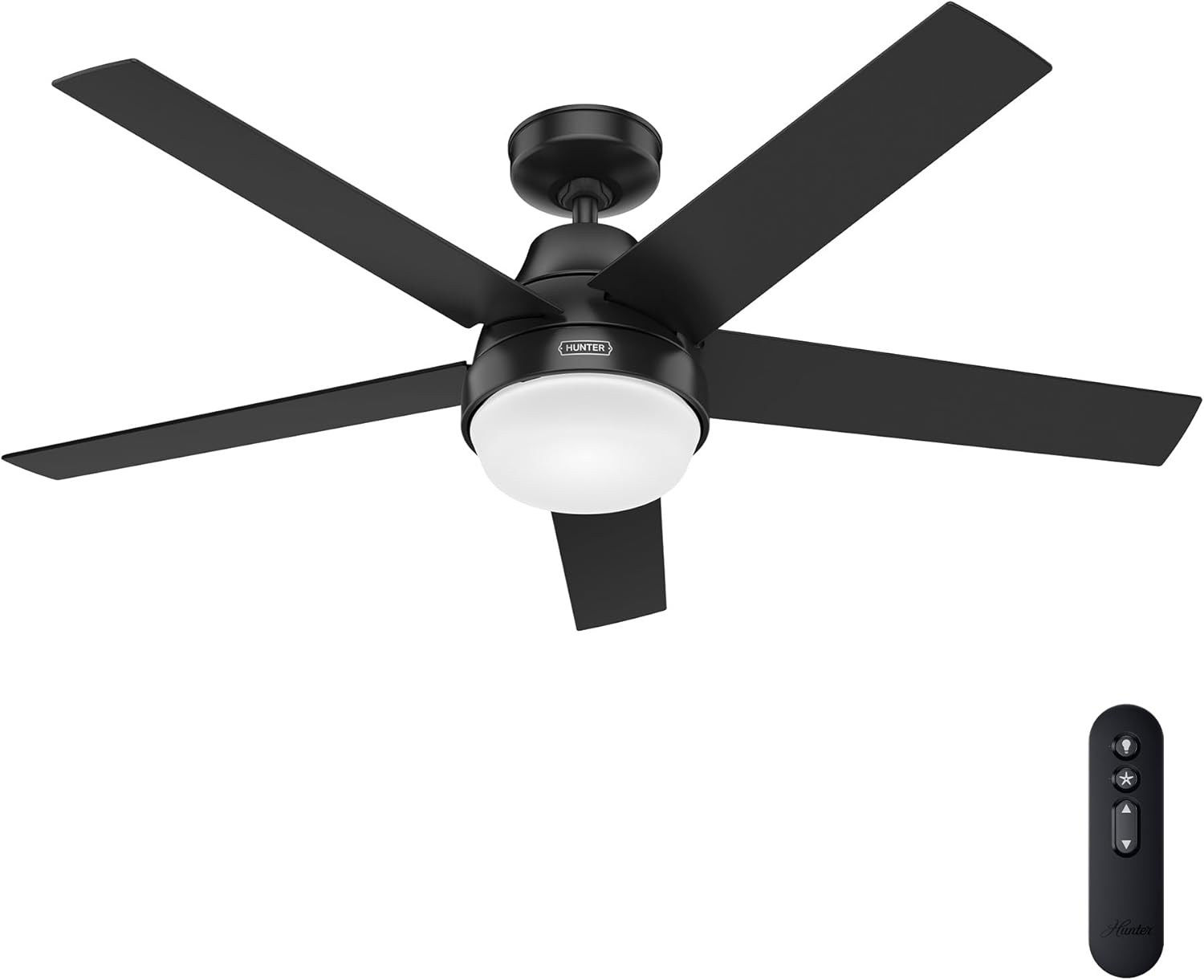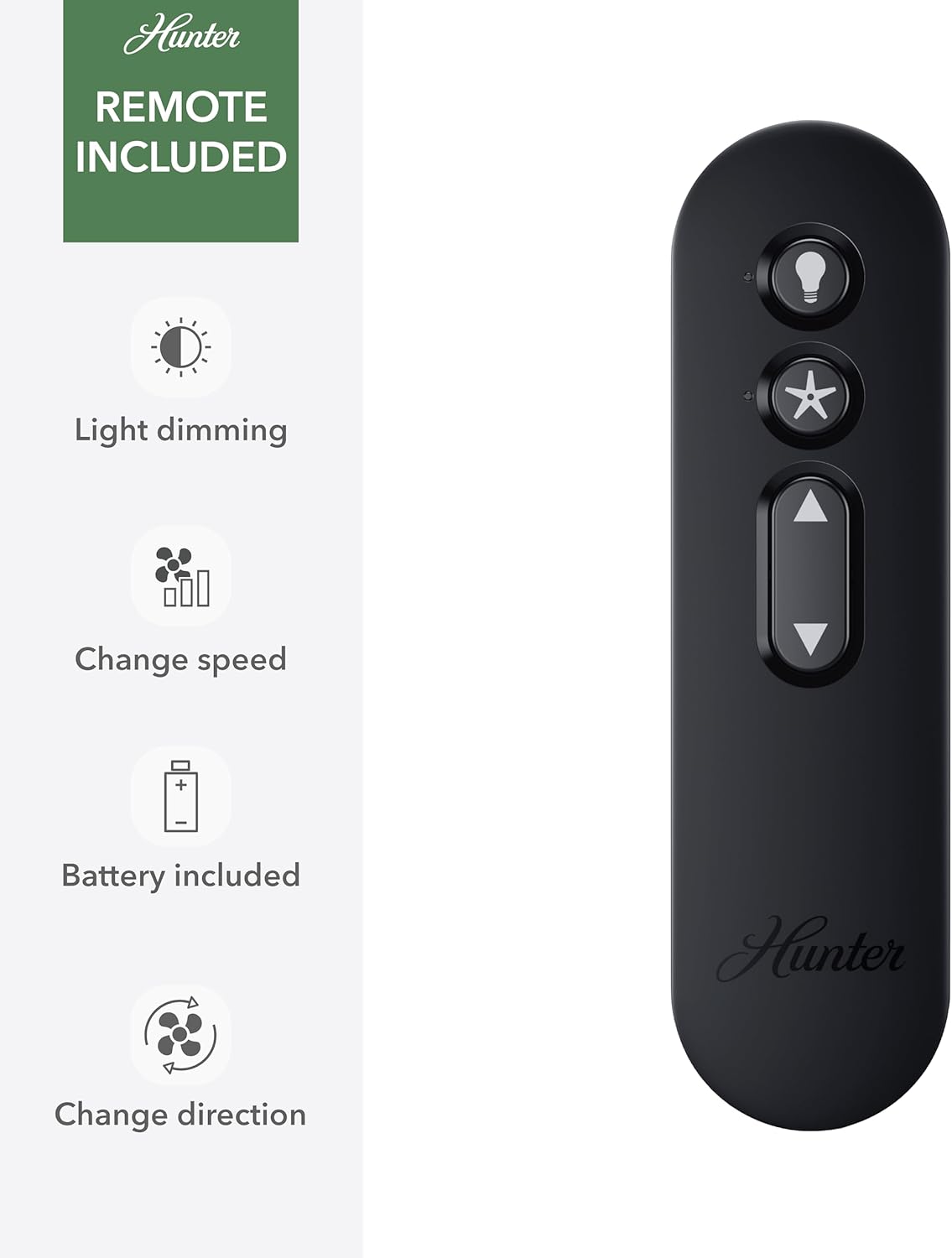 Upgrade your home with the Hunter 51314 Aerodyne 52-inch Matte Black Ceiling Fan, a sleek and modern addition from the trusted Hunter Store. This fan features a powerful, whisper-quiet motor with SureSpeed technology for fast, efficient cooling and a dimmable, energy-saving LED light. Enjoy convenient control with the included remote or via WiFi compatibility with Alexa, Apple HomeKit, and Google Assistant. Perfect for bedrooms and living spaces, this ceiling fan combines contemporary style, smart technology, and energy efficiency for ultimate comfort.