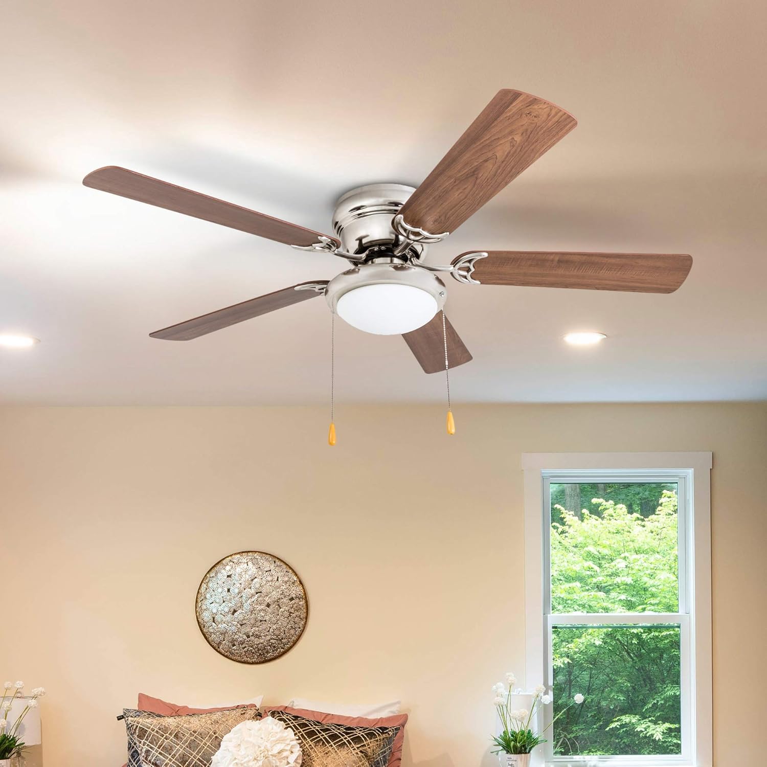 The dimmable lighting technology allows a smooth transition from soft evening ambiance to bright daylight tasks. While the bowl light kit offers 780 lumens when using the included LED bulb, some users install higher lumen bulbs for greater brightness. A small limitation noted in Consumer Reports is that it’s not compatible with wall dimmers—users must use the pull chains to adjust speed and lighting.