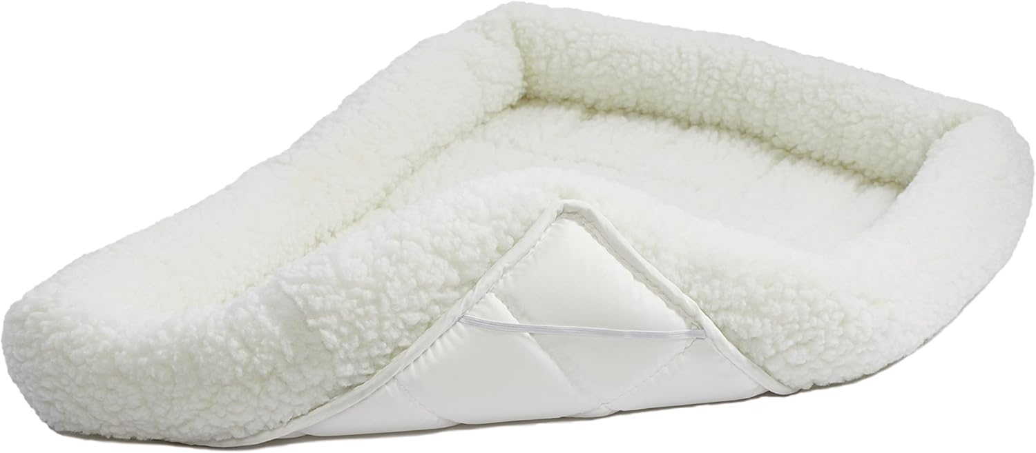 According to Tractor Supply Co., this design is praised for its easy cleaning and effective fit in small crates. Chewy.com reviewers also highlight its plush feel and portability for travel pet bed use.