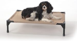 If you’ve been searching for the best dog cot for year-round indoor or outdoor comfort, this product by K&H Pet Products stands out for its smart design and impressive durability. With a raised dog hammock setup, it provides excellent ventilation—perfect for pets who need extra comfort in the warmer months. Unlike traditional beds, this mesh dog bed features a waterproof sleeping surface and fluffy, removable bolster that delivers the security dogs love.