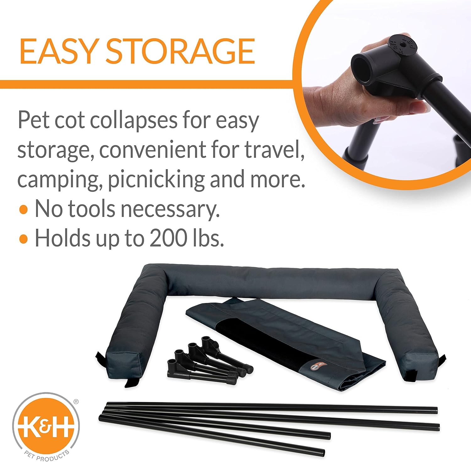 The metal frame pet bed structure of this K&H model is surprisingly lightweight but supports over 200 pounds, making it ideal for breeds ranging from Beagles to Boxers. Because it assembles without tools and packs down easily, this portable dog bed is a favorite for travel, camping, and beach days. According to K&H Pet Products, the outdoor pet bed is crafted with heavy-denier fabric that shields your pet from moisture and keeps bugs at bay.