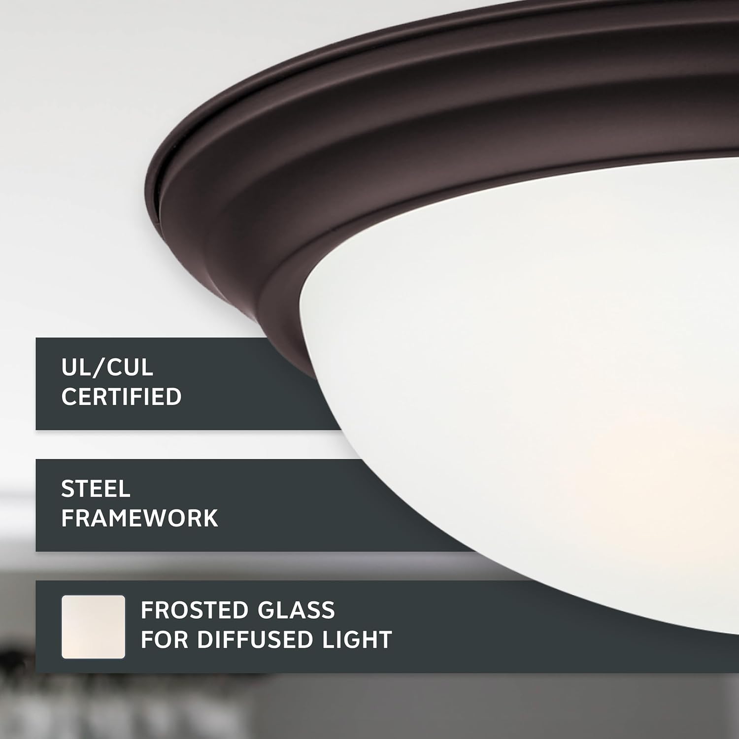 We installed the flush mount in a mid-sized kitchen and noticed an immediate improvement over the old ceiling light. The oil rubbed finish looks upscale, and the etched glass reduces glare, making it ideal for kitchen lighting or even as a bedroom flush light.