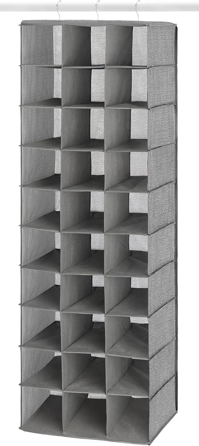 Compared to standalone racks and standard fabric shelves, this product offers a smarter space saving footprint. The 30-section organizer holds more than similar vertical closet storage solutions like the Simple Houseware Hanging Organizer or the Storage Maniac Fabric Shoe Organizer, both of which max out at 24 slots and use flimsier material.
