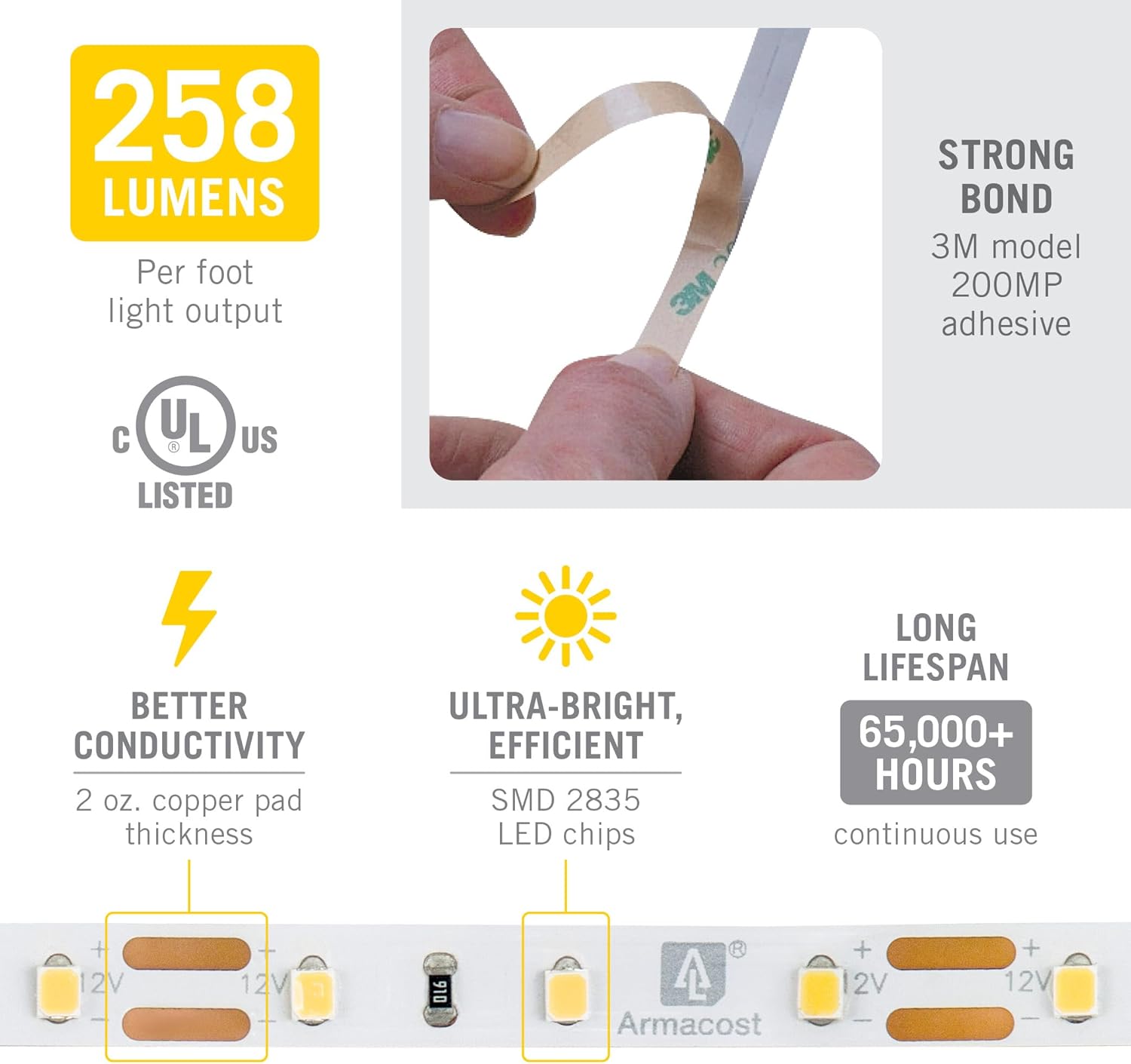 • Easy Installation: Features strong 3M adhesive for secure mounting on nearly any clean surface, supporting a wide range of led tape light applications around the home.