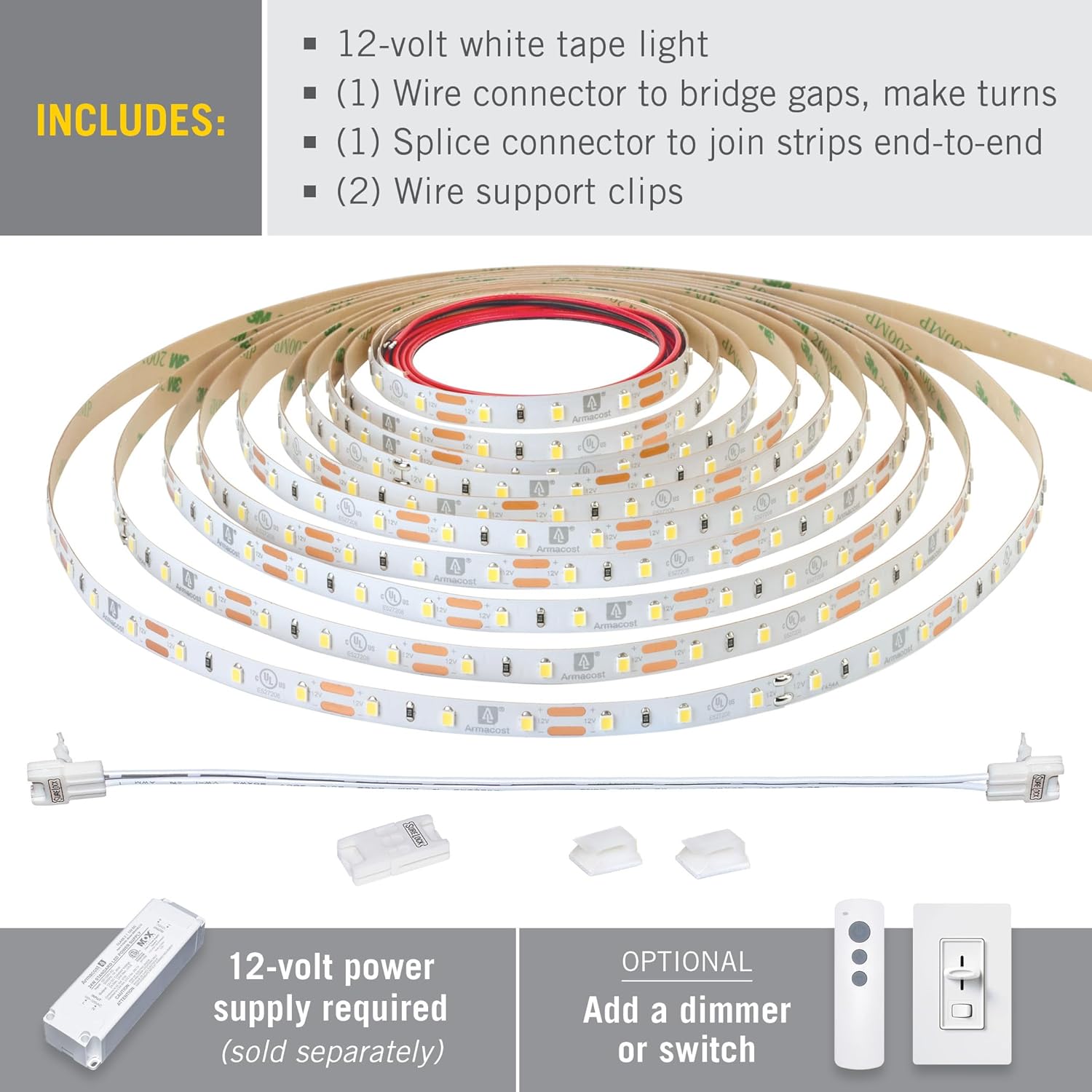 Yes, you’ll need a 12V DC power supply to operate this device. Make sure to match wattage requirements based on the length you’re using, as recommended by Armacost Lighting support.