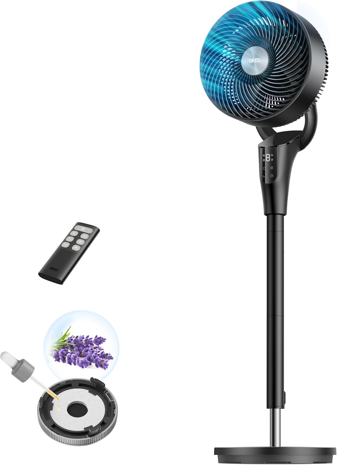 Experience the next level of cooling with the DREO Fan for Bedroom, featuring a powerful 90ft airflow, ultra-quiet 20dB operation, and advanced DC motor technology. This upgraded oscillating standing fan offers 8 speeds, 3 modes, a customizable height (38''–42''), and convenient remote control for whole-room comfort. Enjoy clean, fresh air with easy-to-clean detachable parts and an aroma pad, making it the ultimate choice for bedrooms, living rooms, or kitchens. Upgrade your home with DREO's reliable and versatile cooling power today.