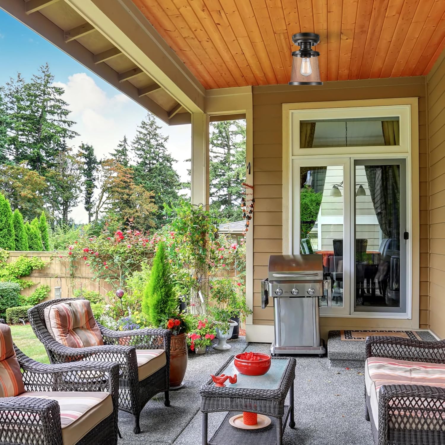 This tool is ideal for homeowners wanting a stylish yet functional porch ceiling light that can withstand outdoor elements. It’s great for those upgrading to a vintage rustic light look, especially if you need a close to ceiling fixture for low-clearance spaces.