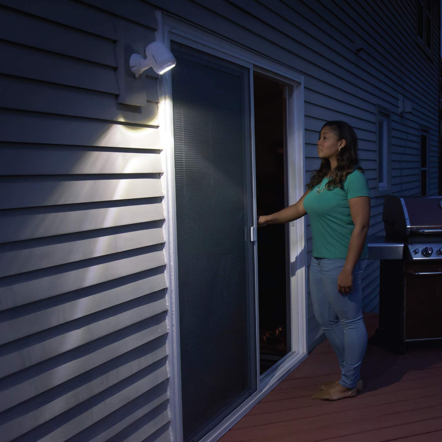 No, a built-in light sensor ensures it only triggers at night or in darkness to save battery power. - Can I use the outdoor spotlight for both front and backyard?
