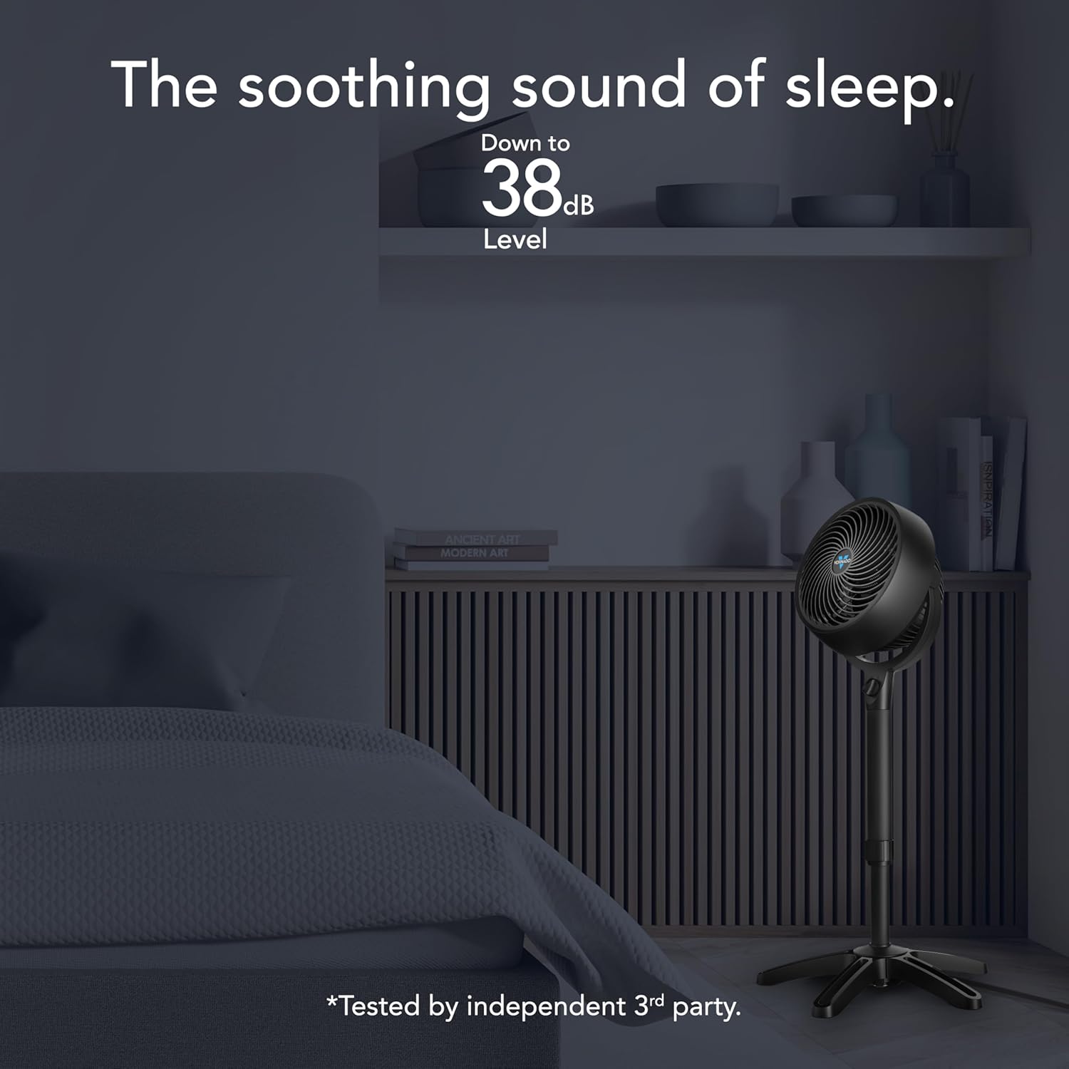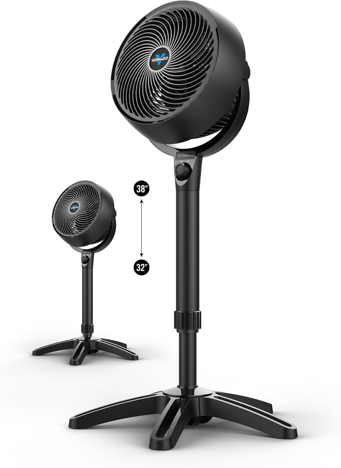 • Adjustable Height & Pivoting Head: The tall stand is easily adjustable from 32 to 38 inches, and the pivoting head allows flexible, targeted airflow for bedroom comfort or workspace flexibility.
