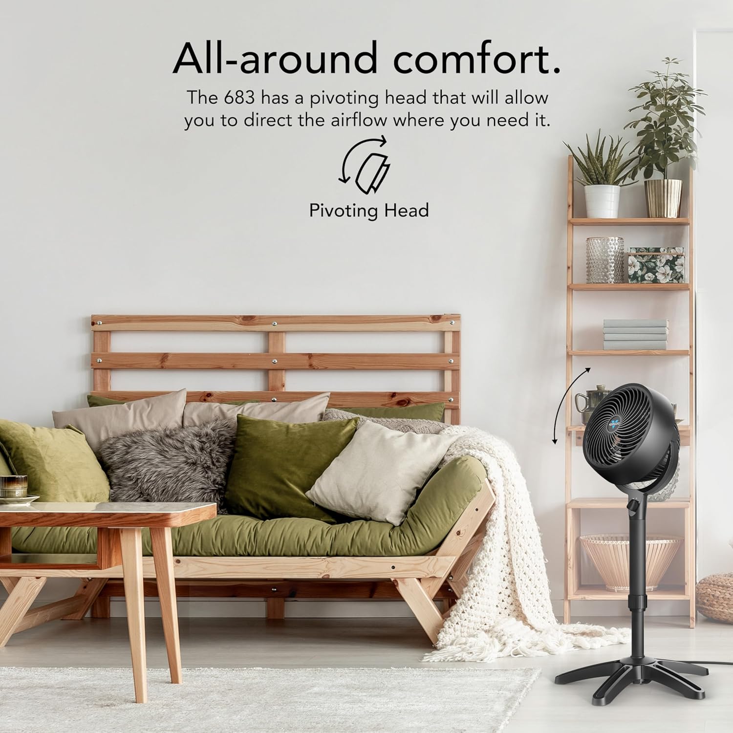 The Vornado 683 Medium pedestal fan is designed to bring advanced whole room cooling to your home in 2025. Unlike old-fashioned fans, this product utilizes signature vortex air circulation for year-round comfort, efficiently eliminating warm spots in your space.