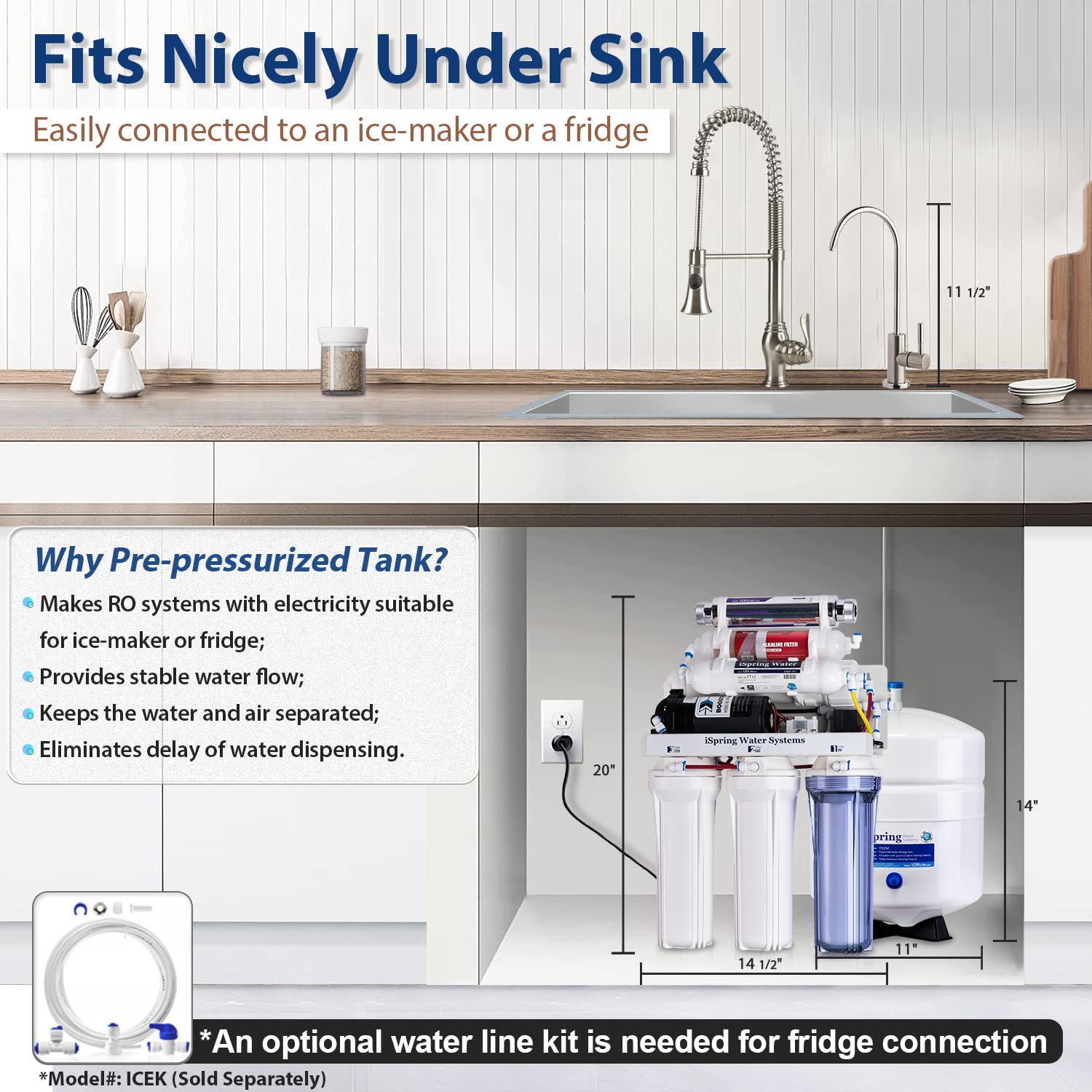 The iSpring RCC1UP-AK is a premium 7-stage reverse osmosis under-sink water filtration system that removes up to 99% of over 1,000 contaminants, including PFAS, chlorine, lead, and arsenic, ensuring your family enjoys safe, great-tasting water. Featuring an efficient booster pump, smart UV filter, alkaline remineralization, and a stylish top-mounted faucet, this system from the trusted iSpring brand combines advanced purification with easy DIY installation. Built to last and simple to maintain, it’s an excellent upgrade for any kitchen and a top pick for health-conscious households.