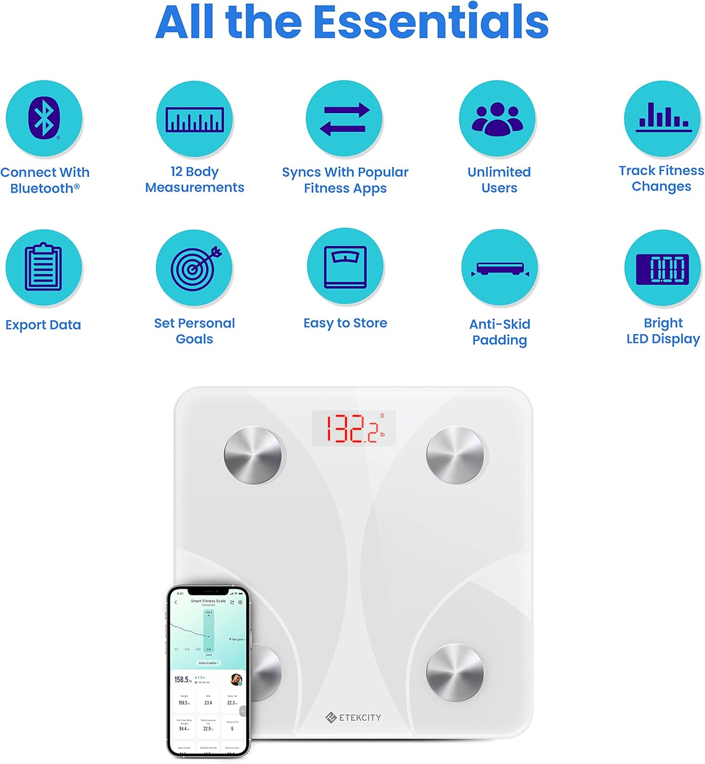 The Etekcity smart scale aims to redefine what a modern bathroom scale can do by providing precise weight tracking and a wealth of health data right in your home. This product distinguishes itself from traditional weighing devices by integrating high accuracy sensors with advanced body composition analysis.