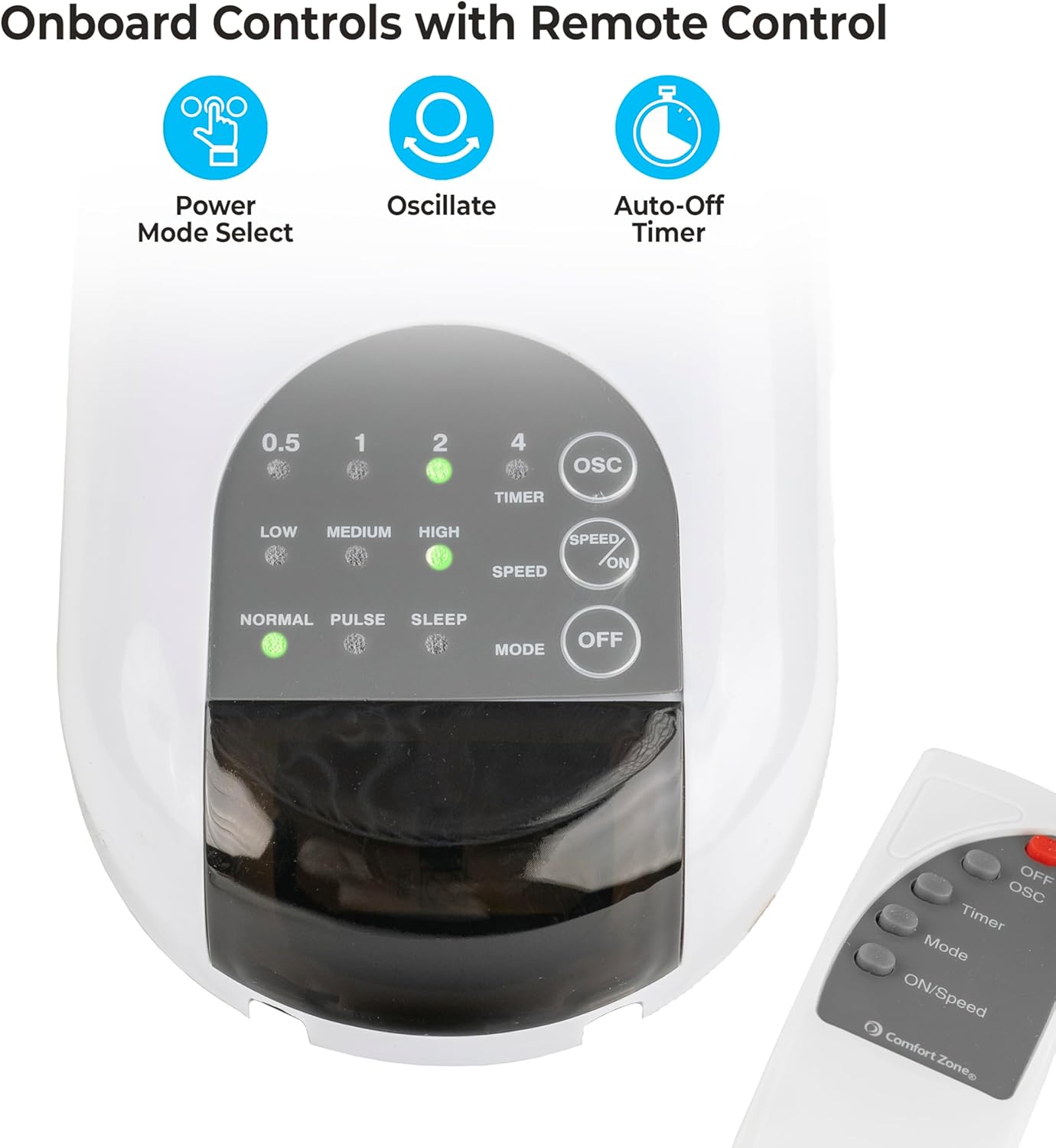 This model stands out among oscillating indoor fan competitors by offering remote control and both sleep and timer modes, which many budget fans lack. When compared to the Honeywell Comfort Control and Pelonis 16-inch models, the Comfort Zone provides superior quiet operation and a more robust wall-mount kit at a similar price.