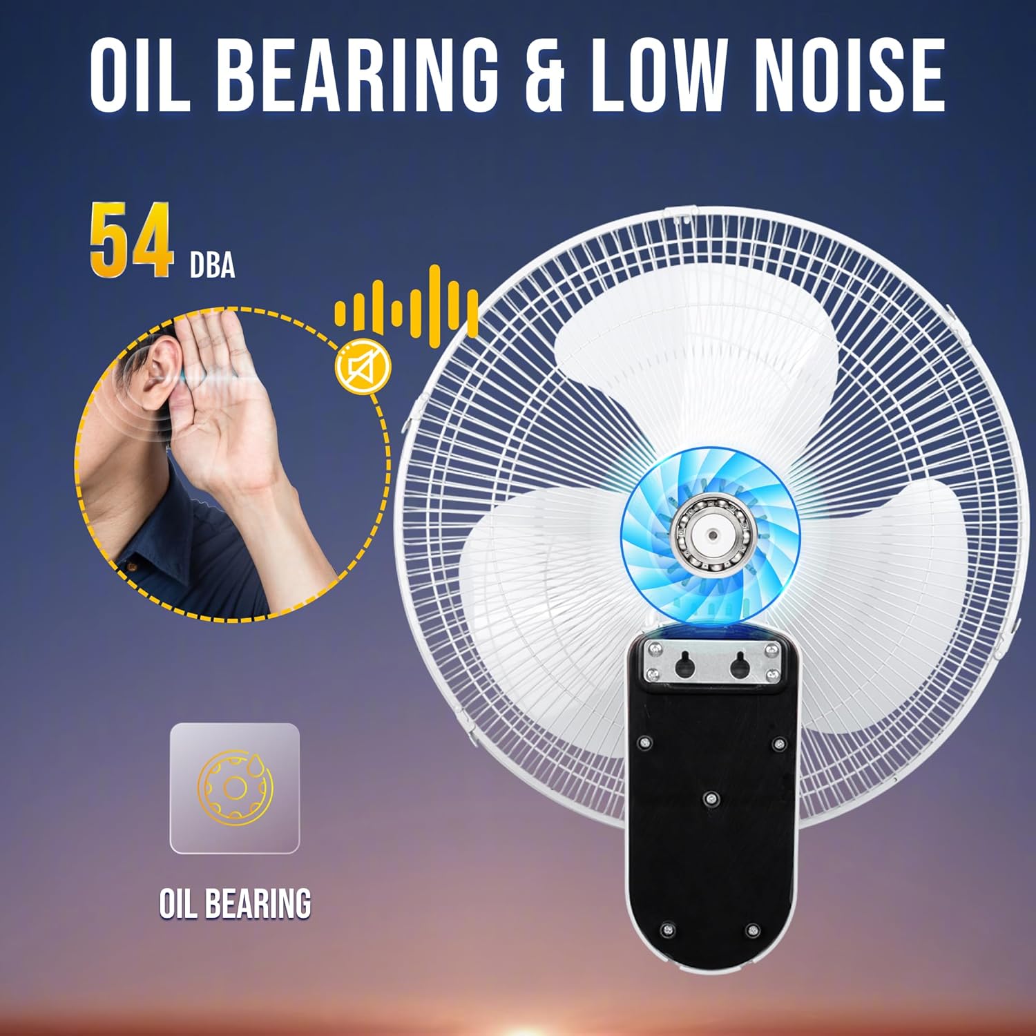 • Ultra Quiet Operation: The heavy-duty metal gear motor operates at just 54 dB, ensuring this space saving fan keeps noise to a minimum—even at max power.