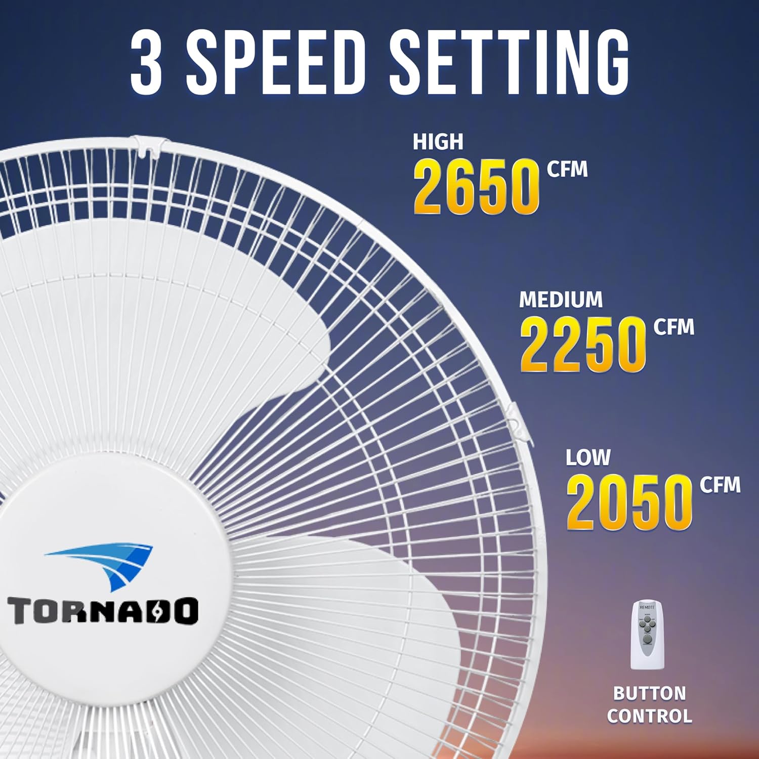 Upgrade your cooling with the Tornado 2 Pack 16 Inch Wall Mounted Fan, a space-saving solution from the trusted Tornado brand. Featuring powerful yet quiet airflow (2650 CFM), three customizable speeds and modes, and a handy remote for effortless control, it's perfect for homes, garages, and workshops. Safety and durability are ensured with UL listing, thermal protection, and a tough build, making it a top pick for convenient, reliable comfort.