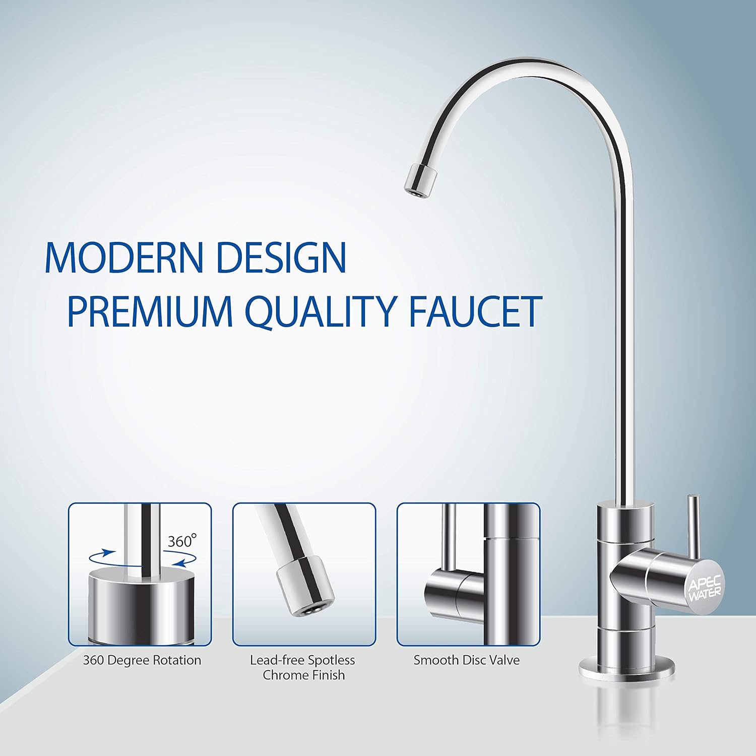 Water flow remains strong (up to 1 gallon per minute), and the lead free faucet maintains steady pressure. Testers noted that filter changes are tool-free and typically needed only once per 12 months, so users benefit from low upkeep. According to APEC Water Systems, the model’s longevity and easy serviceability are standout advantages.